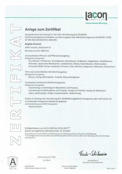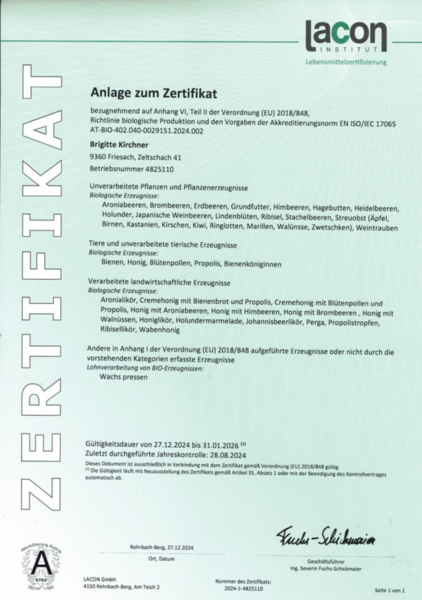 Qualität ist ein wichtiges Thema. Unser Betrieb arbeitet als Bio Betrieb (Bio Austria) und als Honiggütesiegelbetrieb. Als Biobetrieb wird unsere Imkerei jährlich genau überprüft und nur nach positiver Beurteilung wird das Zertifikat verliehen.